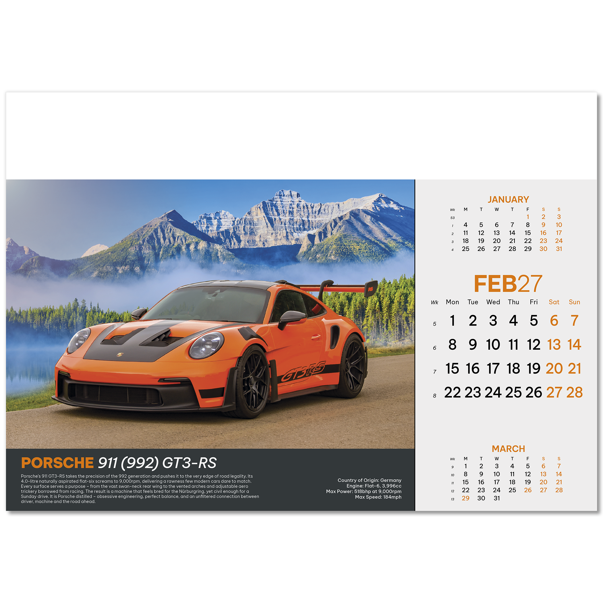 Supercars Wall Calendar